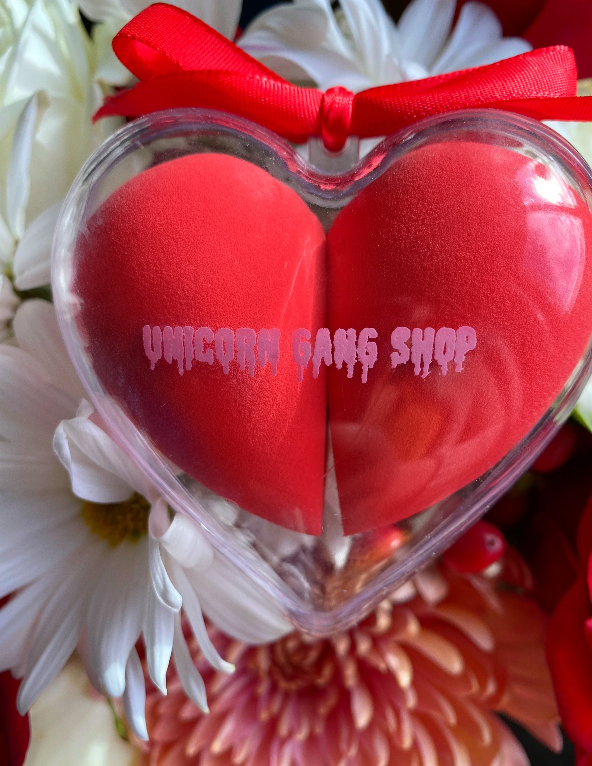 this Valentine’s Day edition set comes with TWO sponges and a cute reusable carrying case.
